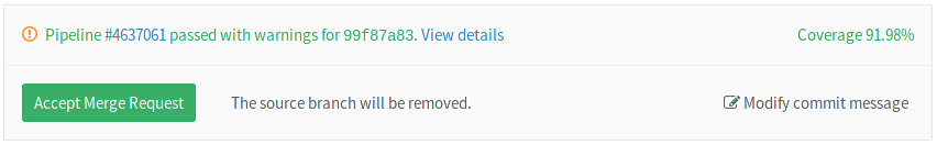 View the code for the pipeline status, coverage reports, and latest release badges
