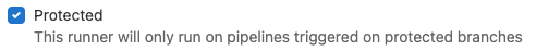 You can protect runners so they don't reveal sensitive information. When a runner is protected, the runner picks jobs created on protected branches or protected tags only, and ignores other jobs.