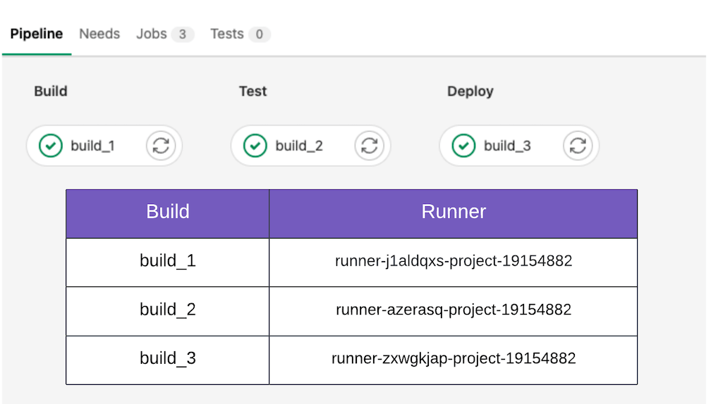 In this example, there are three jobs in the project's pipeline. Therefore, there are three temporary VMs used to run that pipeline, or one VM per job.
