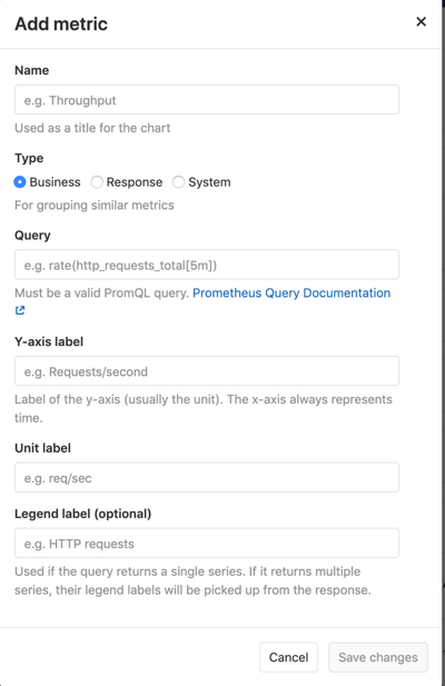 - Add custom metrics: In addition to the GitLab default metrics, you can create custom metrics and display them on your metrics dashboard.