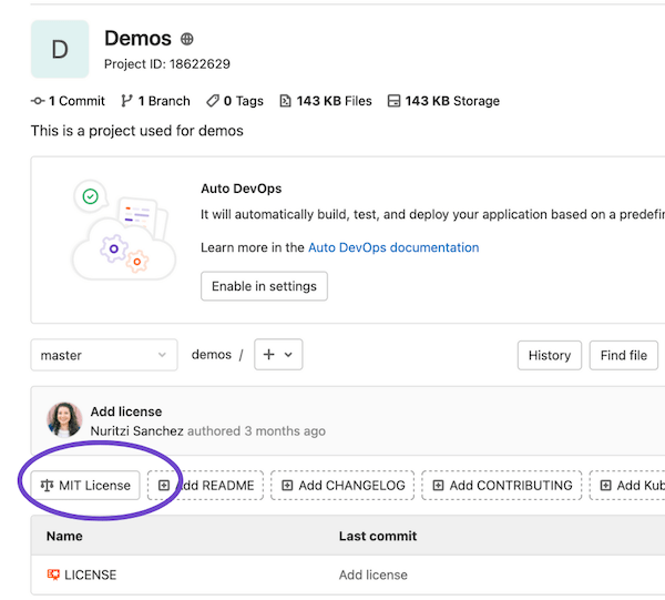 2. On the overview page, select Add LICENSE. If the license you want is not available as a license template, manually copy the entire, unaltered text of your chosen license into the LICENSE file. Note that GitLab defaults to All rights reserved if users do not perform this action.