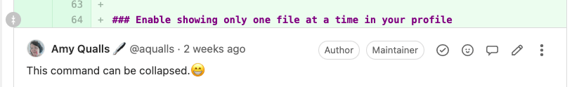 For larger merge requests, you can review one file at a time. You can change this setting temporarily in a merge request, or so it applies to all merge requests.